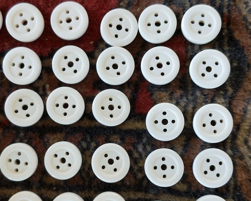 reproduction 18th/19th century white horn 5 hole buttons , used on gaiters , uniforms and leather slings copy from originals – set of 20 buttons