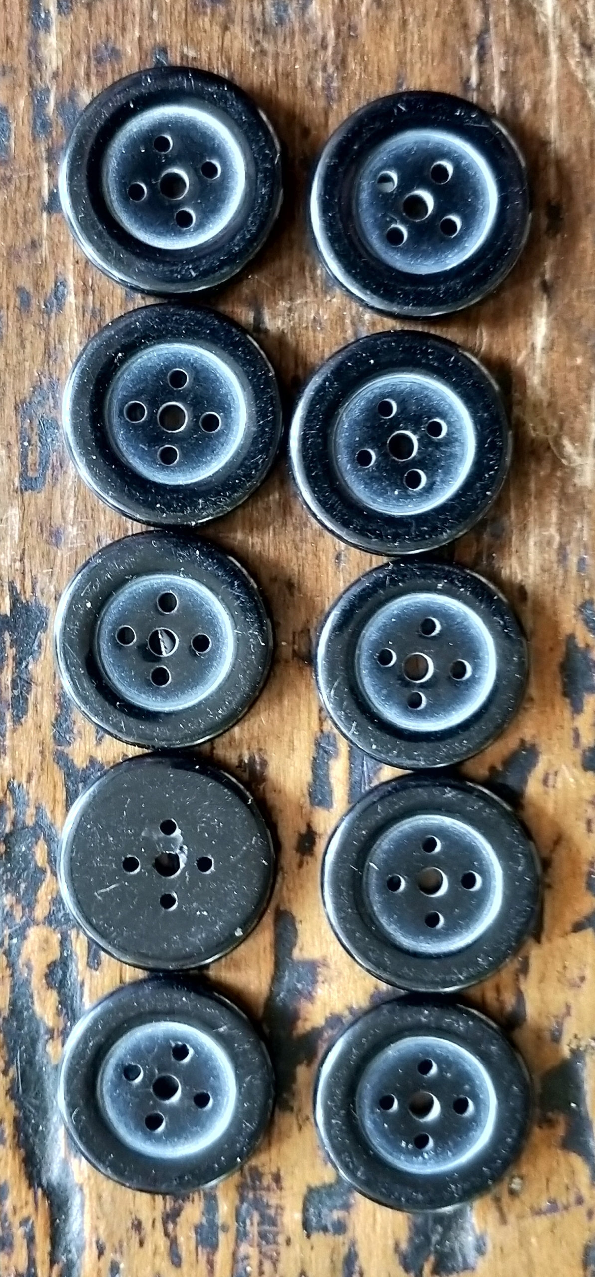 reproduction 18th/19th century Black horn 5 hole 20mm buttons , used on gaiters , uniforms and leather slings copy from originals – set of 20 buttons