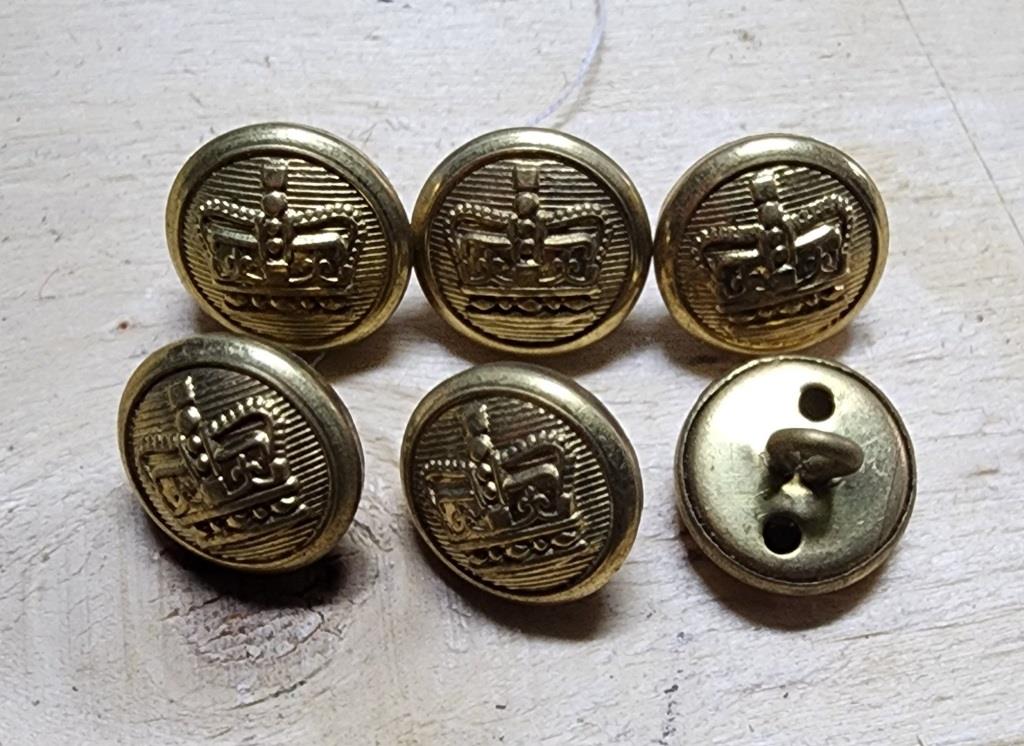 reproduction Crown staff buttons 1820’s and used up to the 1850’s in Australia found at various police camps brass two piece – small set of 12x 18mm approx.