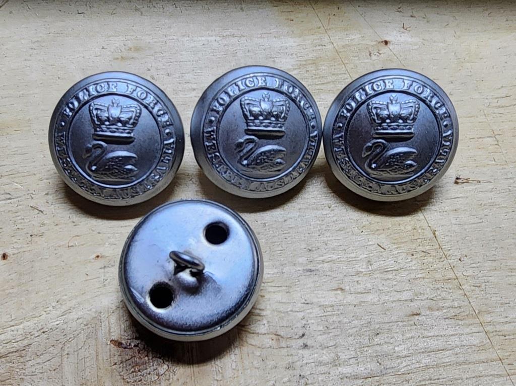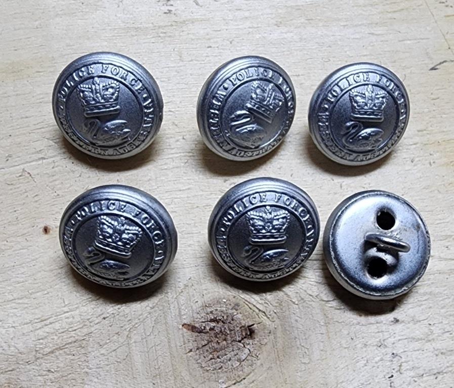 reproduction Victorian Colonial WA Police Buttons – Nickle Plated – Large set of 12x 24mm approx.